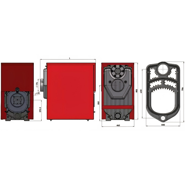 تصویر شماتیک دیگ چدنی سولار 300 شوفاژکار 5 پره: